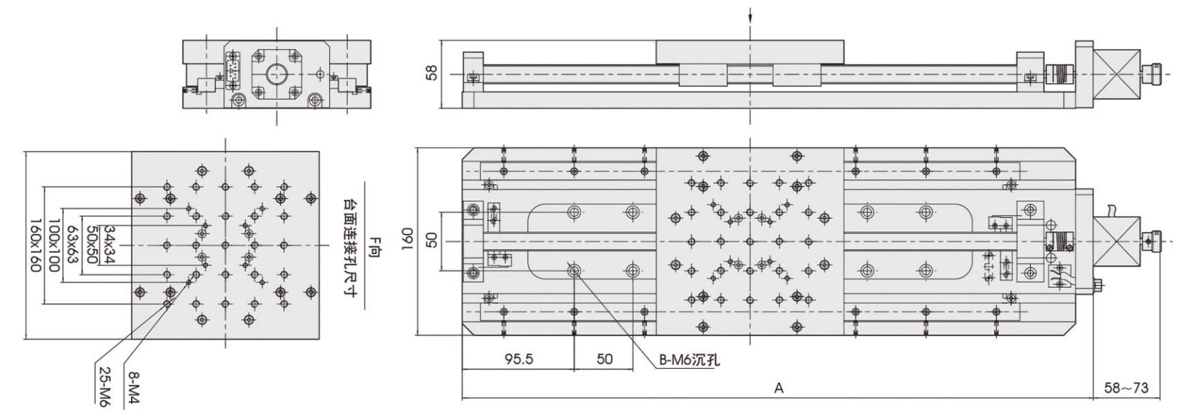 技術(shù)優(yōu)勢: . 標(biāo)配步進(jìn)電機和標(biāo)準(zhǔn)DB9接口,配合控制器可實現(xiàn)自動控制; . 采用進(jìn)口高品質(zhì)滾珠螺桿驅(qū)動,重復(fù)定位精度高,壽命長; . 螺桿為三軸承安裝結(jié)構(gòu),軸端鎖緊結(jié)構(gòu)防止螺桿松動,適合高往復(fù)使用; . 精密線性滑塊導(dǎo)軌(整體與底板連接),承載較大,運行平穩(wěn),適合單軸中載或多軸組合使用; . 配有手輪,方便調(diào)試; . 兩端裝有零位和限位開關(guān),方便準(zhǔn)確定位和保護(hù)產(chǎn)品; . 底部有標(biāo)準(zhǔn)孔距的螺紋孔和通孔,方便安裝固定。 . 可換裝伺服電機,實現(xiàn)高度或軸向重載; . 可加裝防塵罩,耐高溫,耐油污,有效保護(hù)導(dǎo)軌及絲杠,延長使用壽命; |