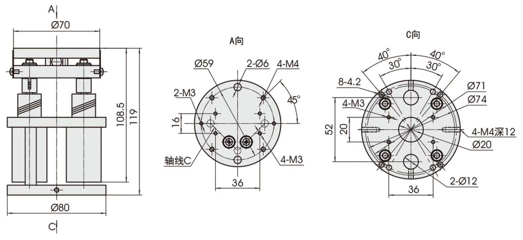 . 底座有標準孔距的螺紋孔和通孔,方便安裝;