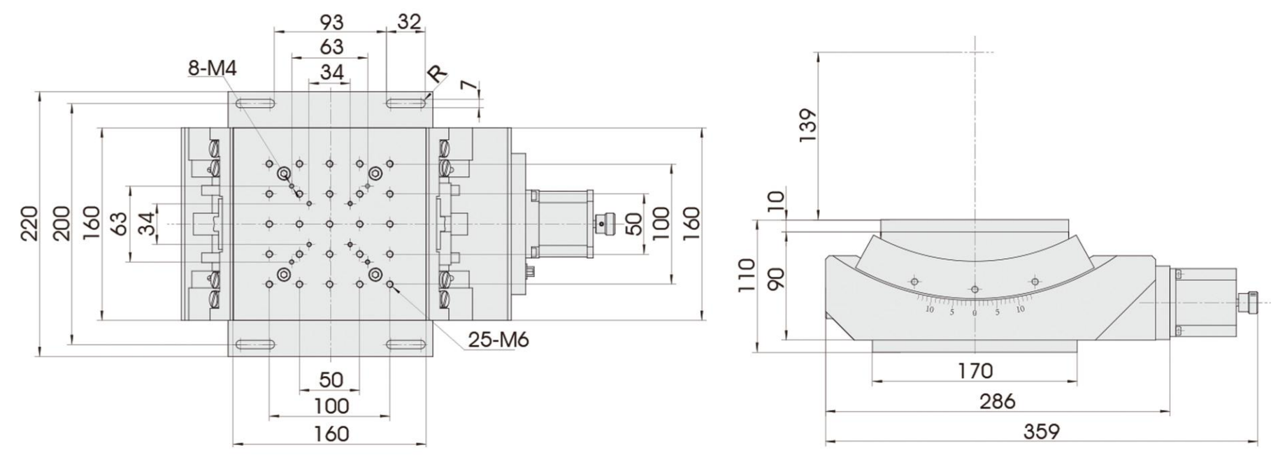 型號(hào) | ATS215 | ATS230 | | 調(diào)節(jié)范圍 | ±15° | ±30° | | 臺(tái)面尺寸 | 160x160mm | | 軸心高度 | 139mm | | 傳動(dòng)比 | 400:1 | | 重復(fù)定位精度 | 0.004°