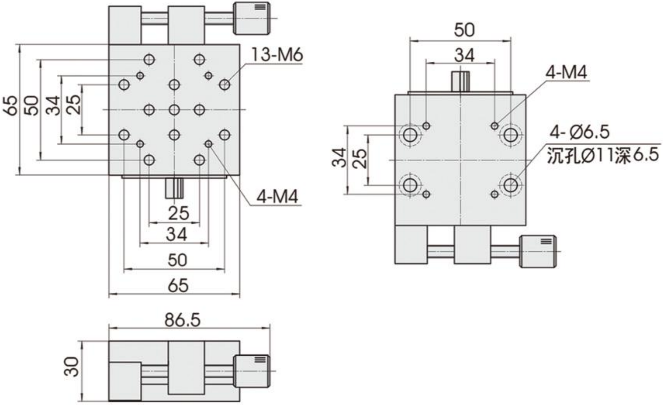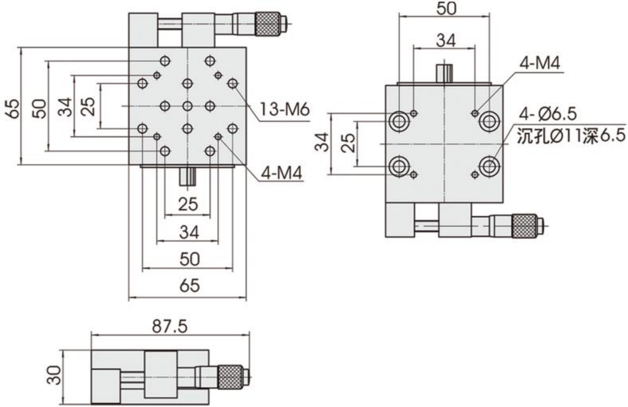技術(shù)優(yōu)勢(shì): . 主體材質(zhì)采用優(yōu)質(zhì)鋁合金,表面噴砂氧化發(fā)黑處理 . 采用精密線性滾珠導(dǎo)軌,精度高,成本低 . 采用螺紋副或微分頭驅(qū)動(dòng) . 采用彈簧復(fù)位,消除軸向間隙 . 臺(tái)面和底座分布標(biāo)準(zhǔn)孔距的安裝孔,方便安裝和組合 . 可與譜量其他系列位移產(chǎn)品組成多維度調(diào)節(jié)系統(tǒng) . 該系列整體靈敏度優(yōu)于2μm . 可根據(jù)用戶需求定制不同臺(tái)面和行程 . 適用于光學(xué)實(shí)驗(yàn)等對(duì)手動(dòng)調(diào)節(jié)精度要求較高的場(chǎng)景 |
