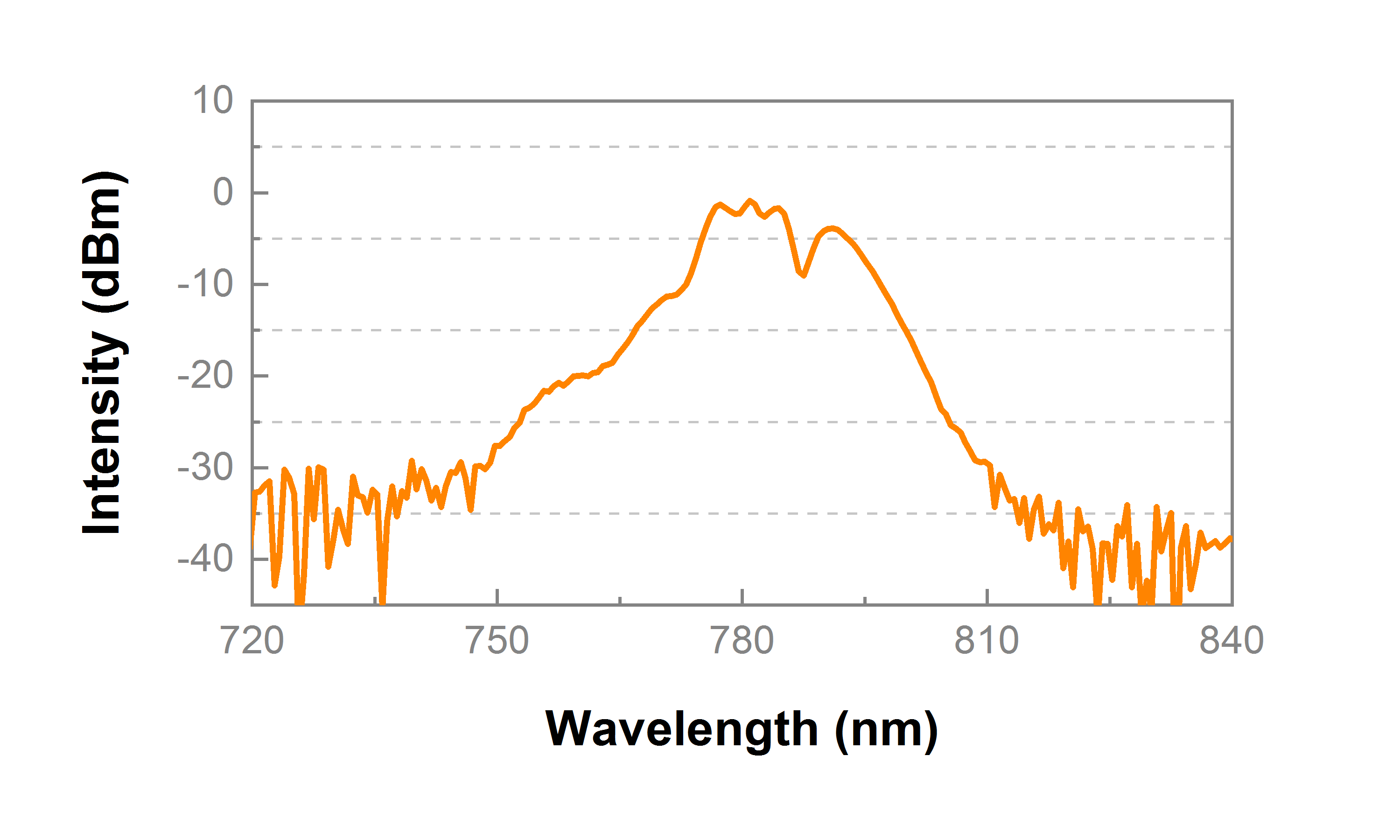 項(xiàng)目名稱 | 單位 | 基頻光 | 倍頻光 | 工作波長(zhǎng) | nm | 1560±10 | 780±10 | 脈沖寬度 | fs | <100 | 重復(fù)頻率 | MHz | 80 | 平均功率 | mW | >100 | >60 | 功率穩(wěn)定性 | % RMS | < 0.5 ( 24h@25℃ ) | 峰值功率 | KW | >20 | >10 | 偏振消光比 | dB | >20 | 單脈沖能量 | nJ | >1.25